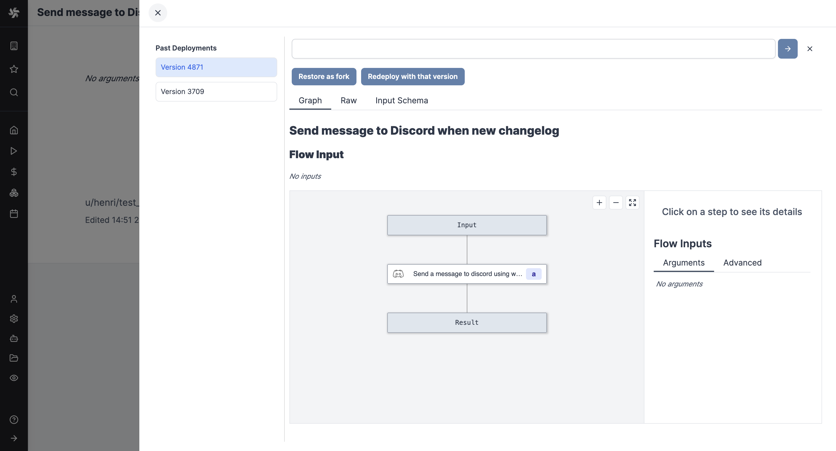 - Tree view of the flow steps