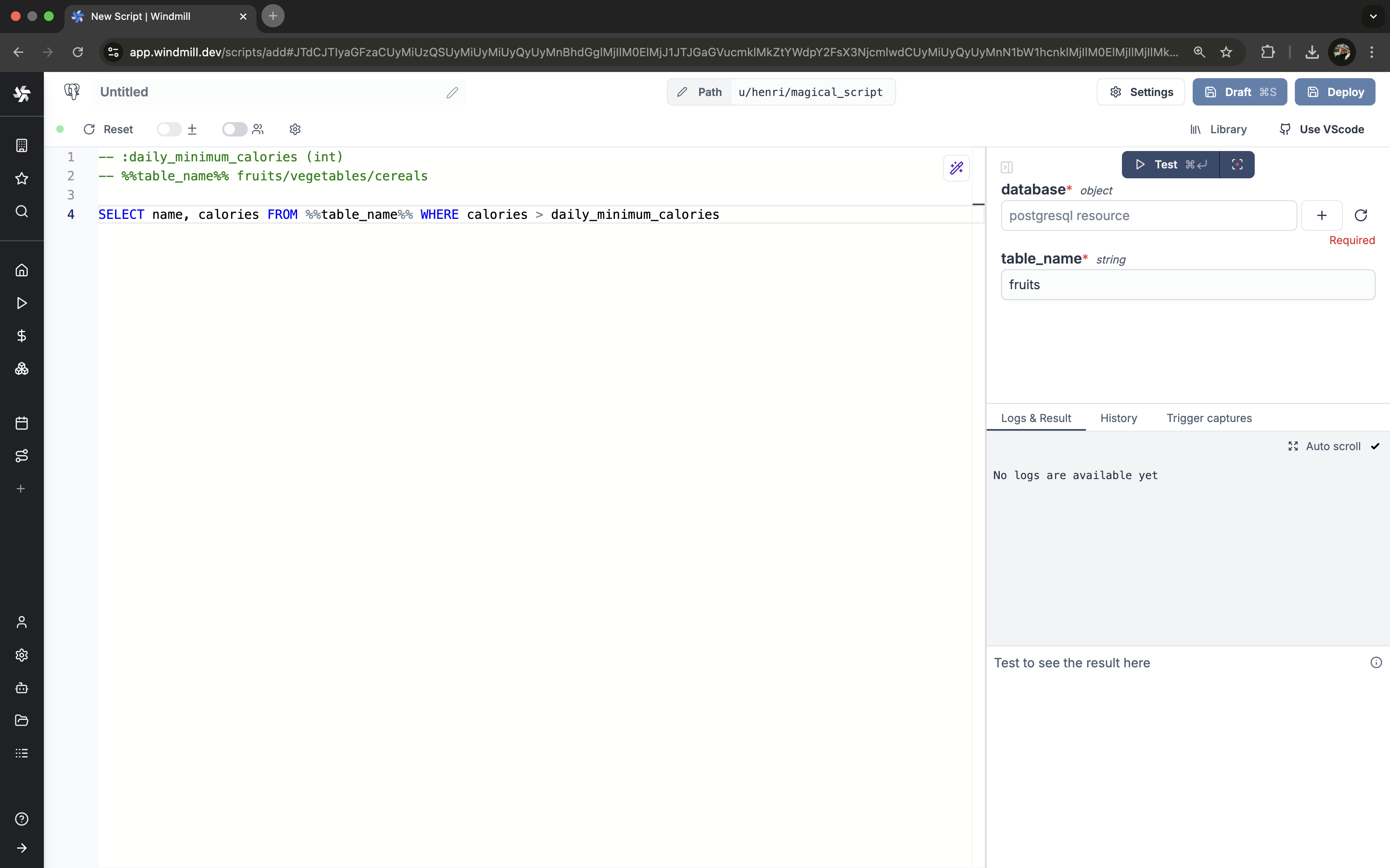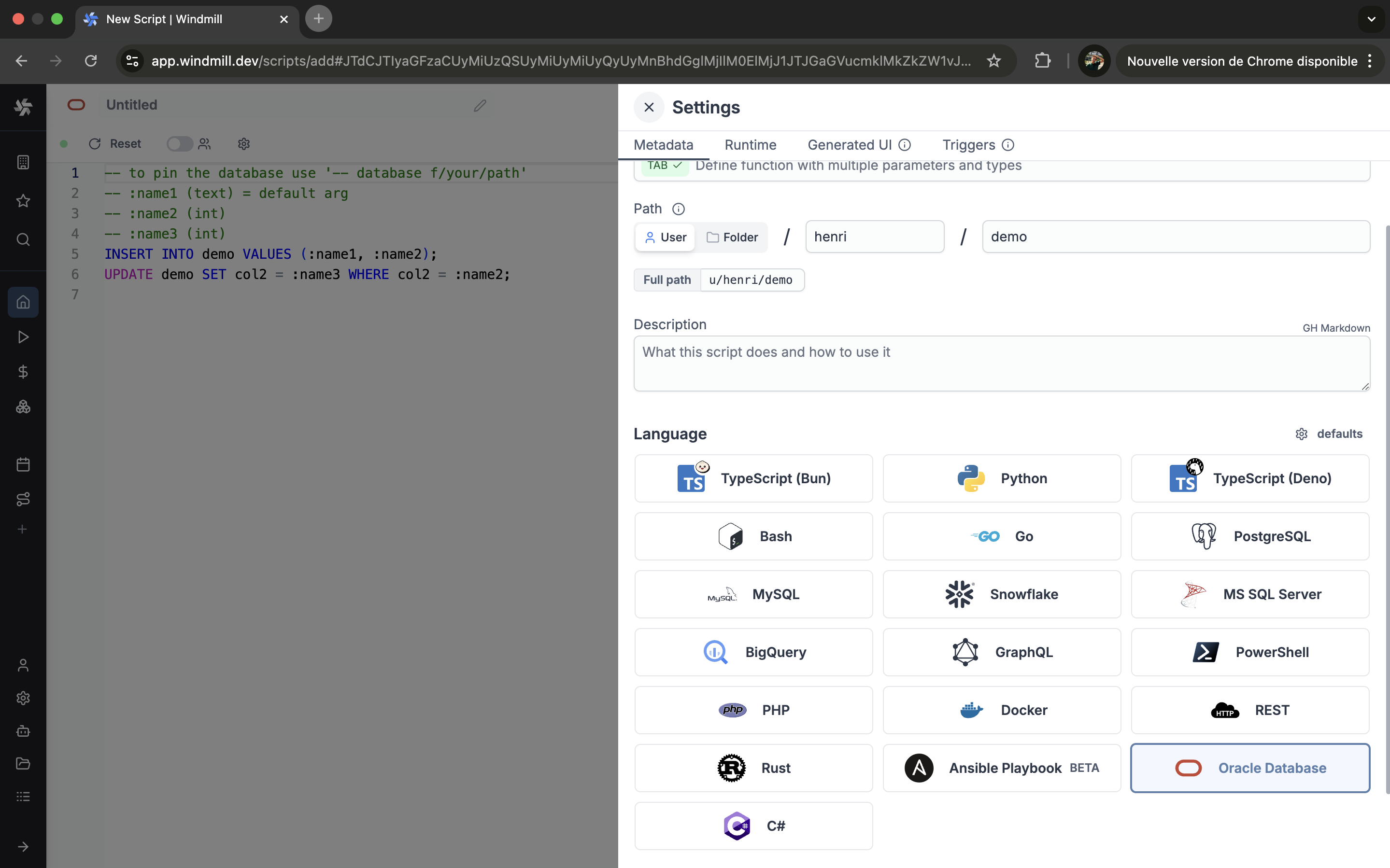 - Write your Windmill script in Ruby.